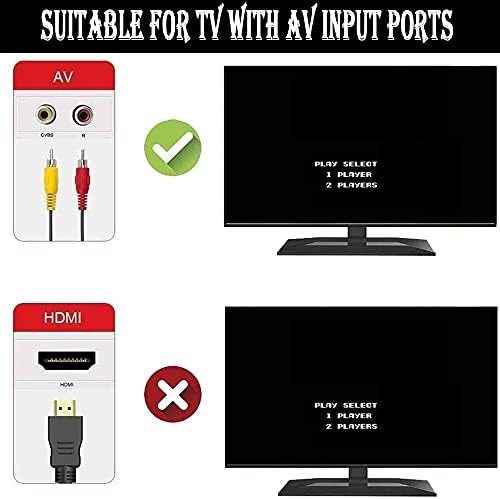 AV Display – Connect to your TV via AV out. 8-bit Video game picture quality is not as clear as today’s games. But many classic games are still fun and very challenging.(don’t work with HDMI)